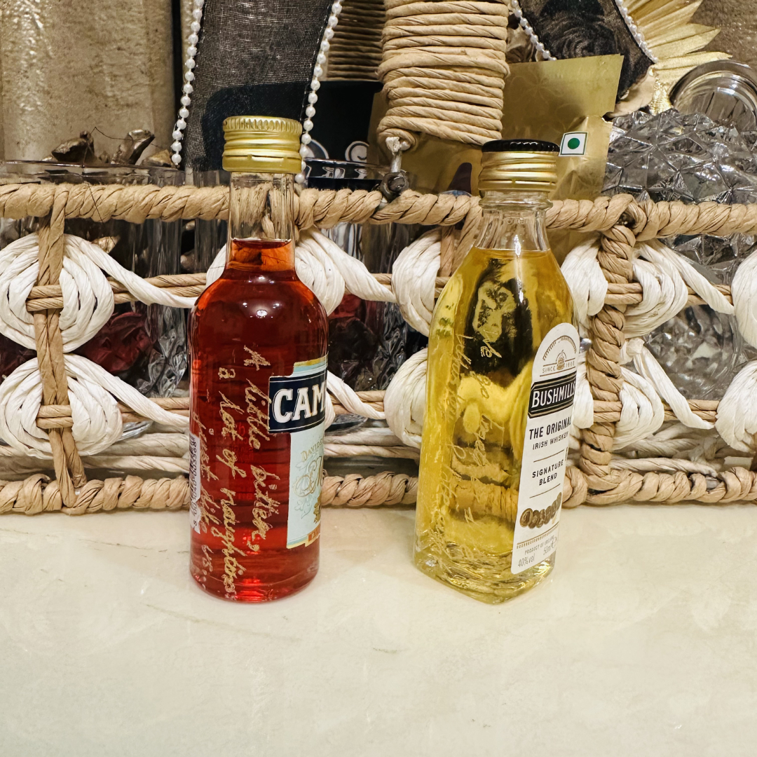 - Miniature Liquor Bottles – Select labels included (customizable as per occasion)