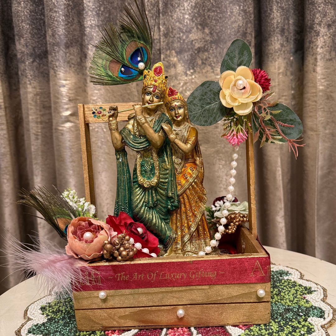- Pure Brass Radha Krishna Idol: Embellished with hand-applied multicolour stone accents—symbolising love, devotion, and blessings.